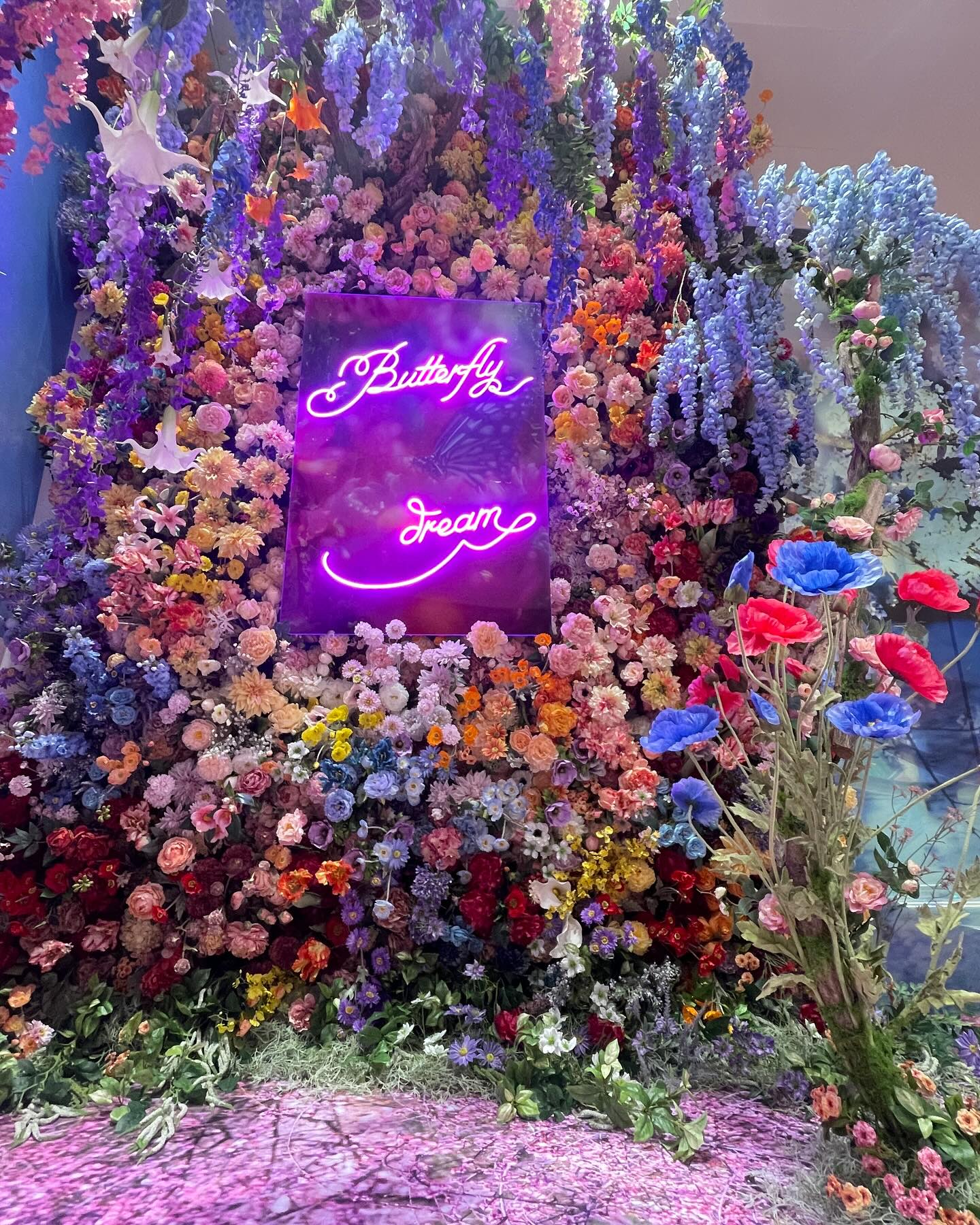 共同完成這座接近4米高的花牆,非常過癮大玩色彩藝術,虛幻真實與繽紛色彩,近千朵花層層疊疊,真實的花藝與大型花藝影像交錯,打開視覺的所有感官。