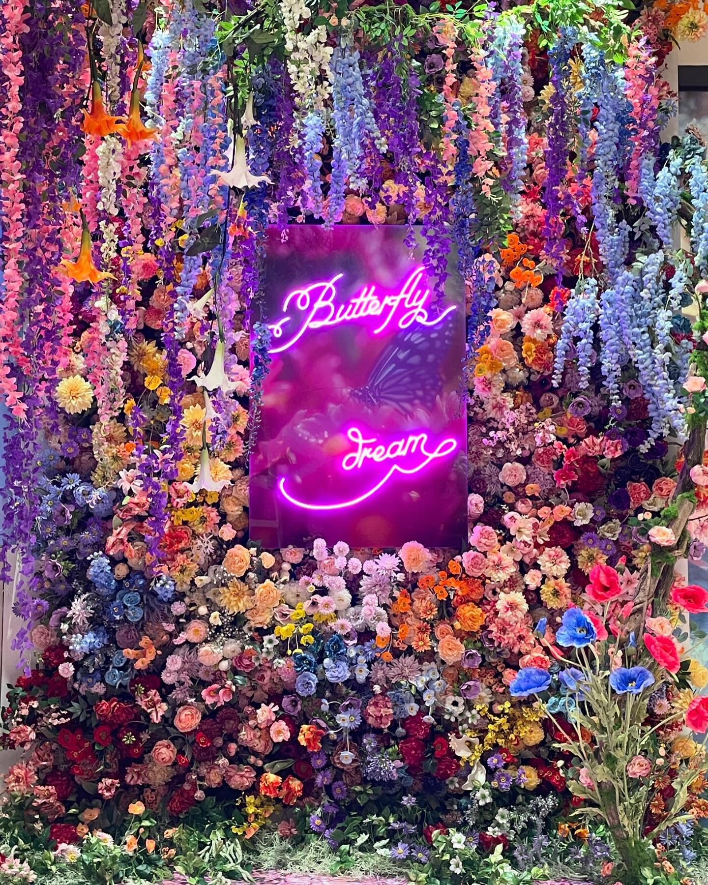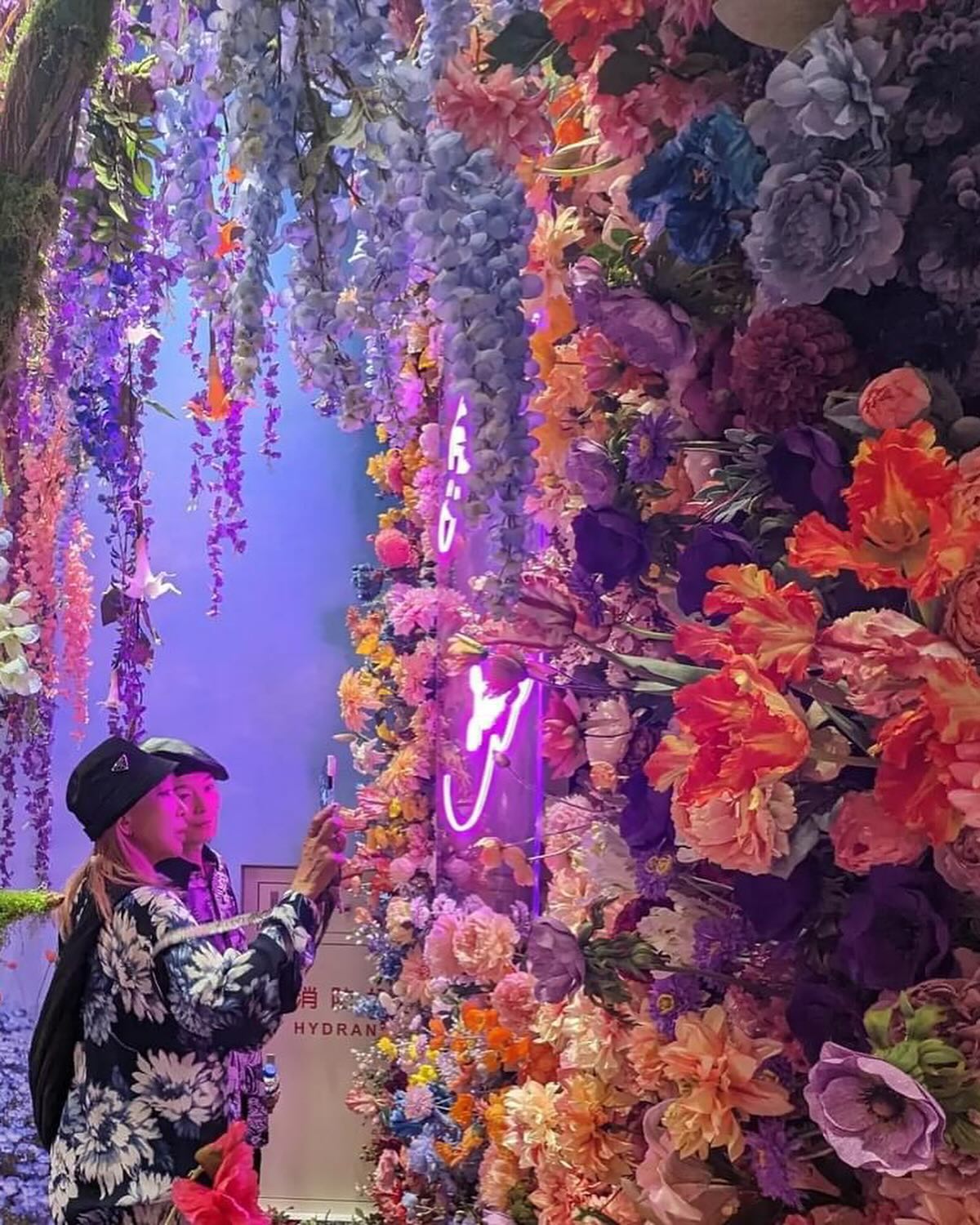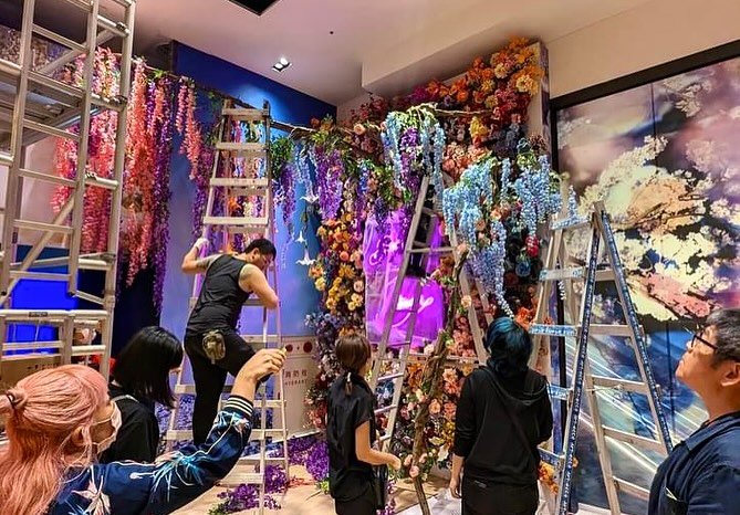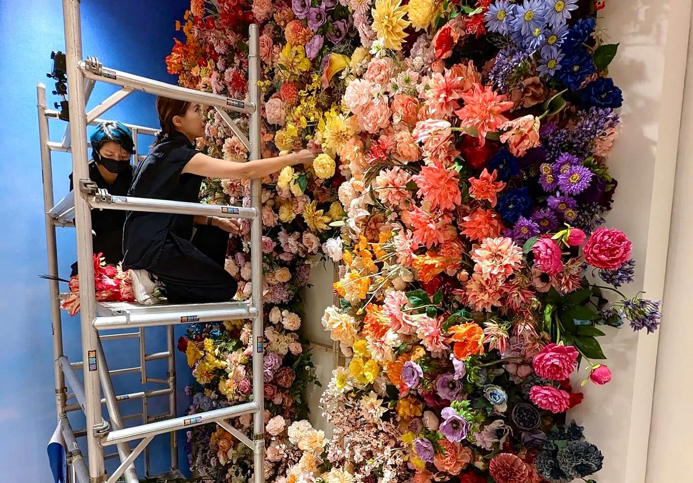 共同完成這座接近4米高的花牆,非常過癮大玩色彩藝術,虛幻真實與繽紛色彩,近千朵花層層疊疊,真實的花藝與大型花藝影像交錯,打開視覺的所有感官。