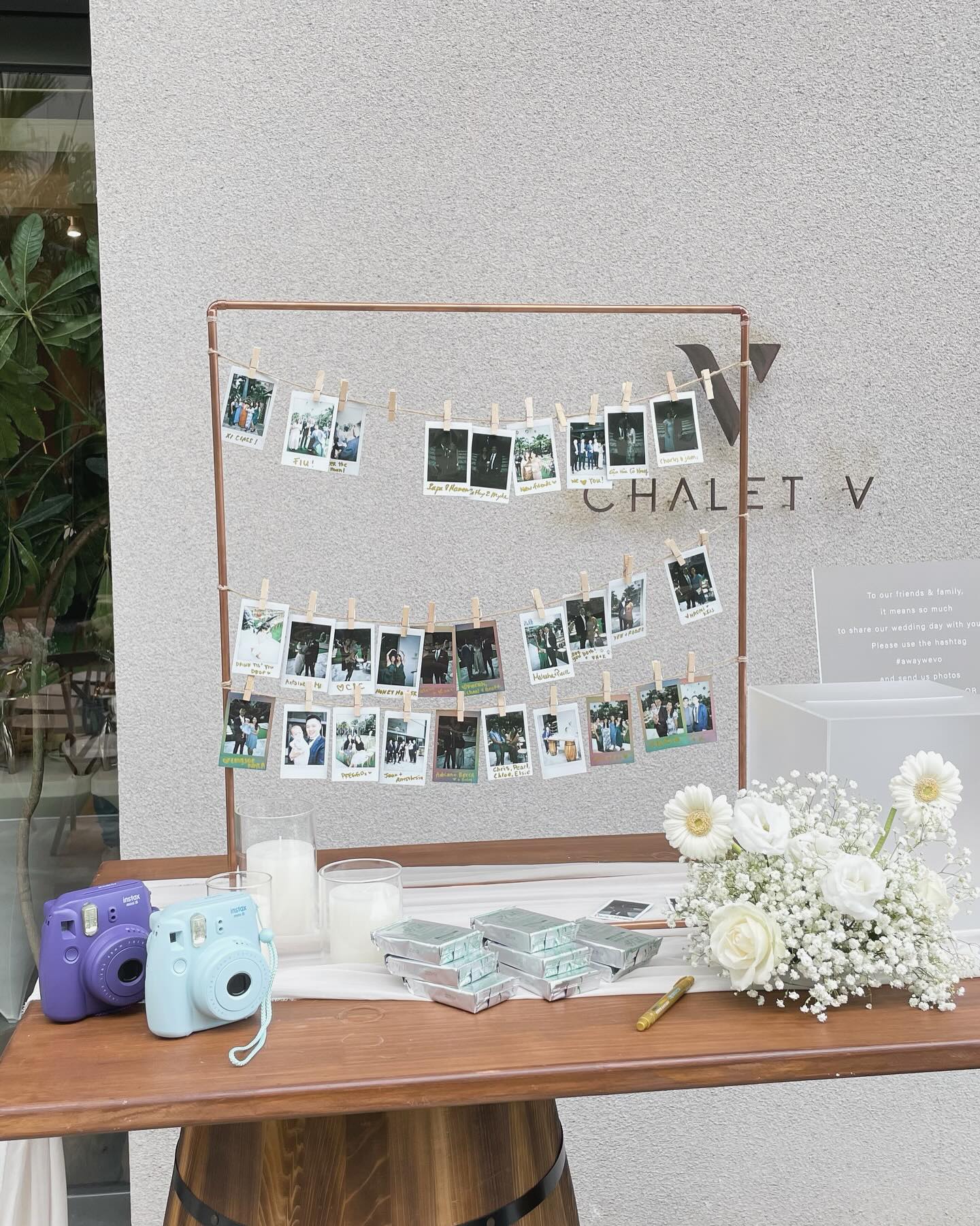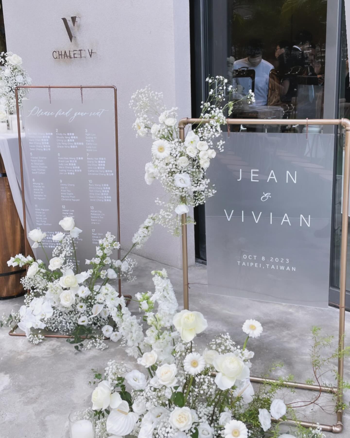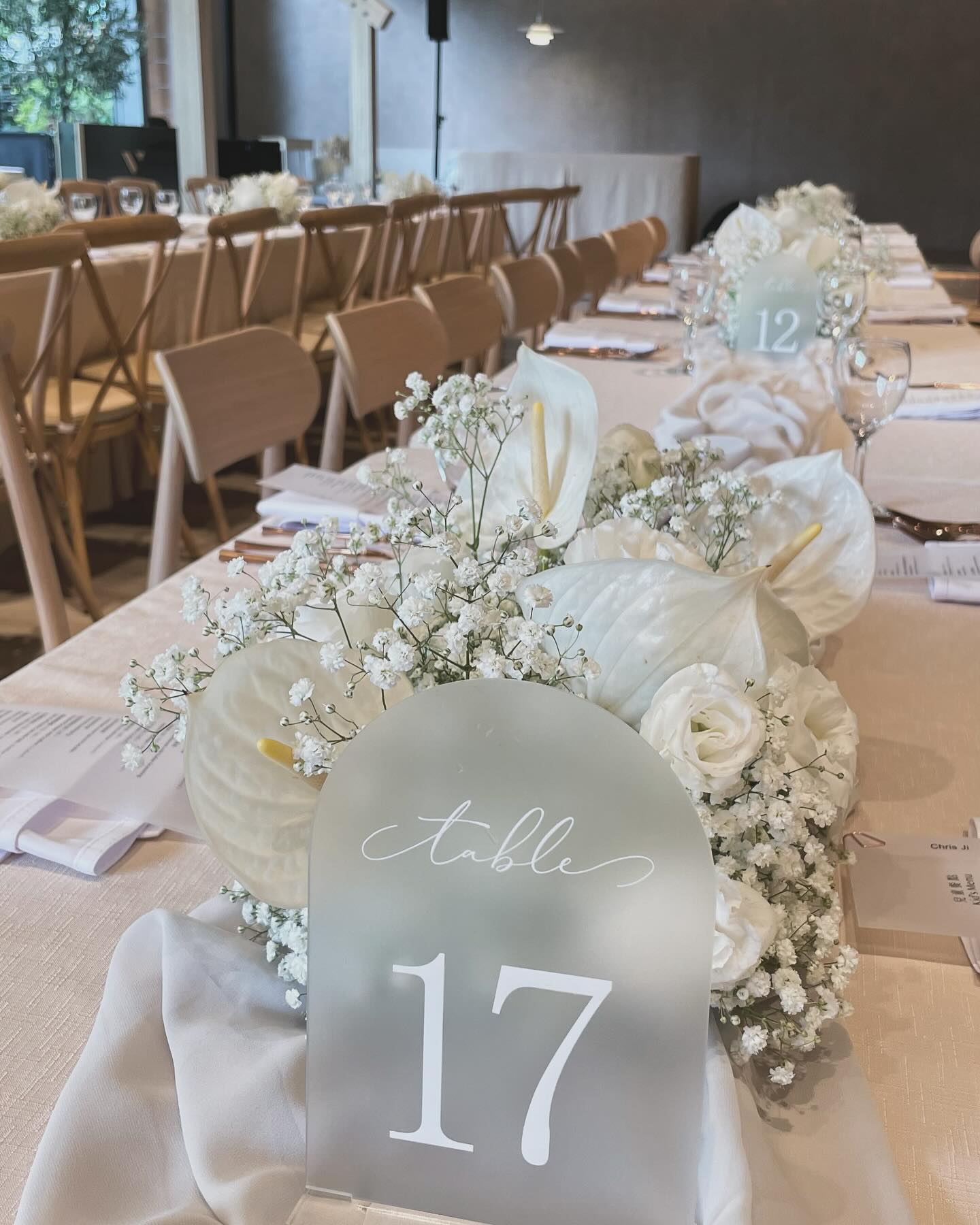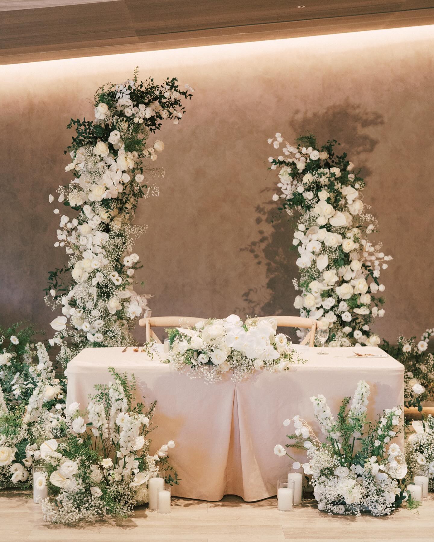 整體佈置氛圍是乾淨、現代感、簡約的白色婚禮